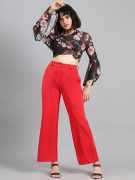 Cut to a relaxed silhouette, this white trouser from Kotty is perfect for a day out. Made from viscose rayon fabric, this trouser has regular fit for your convenience. Solid pattern, this trouser possesses a stylish enchantment. Team this trouser with a pair of contrast pants and ballerinas for a chic look.
