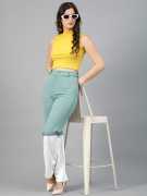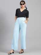 Cut to a relaxed silhouette, this white trouser from Kotty is perfect for a day out. Made from viscose rayon fabric, this trouser has regular fit for your convenience. Solid pattern, this trouser possesses a stylish enchantment. Team this trouser with a pair of contrast pants and ballerinas for a chic look.