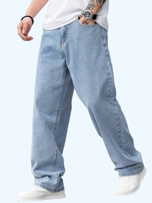 Stay effortlessly cool in these Raguler-fit light blue jeans for men. Crafted from durable denim with a laid-back silhouette, perfect for casual streetwear vibes.