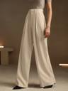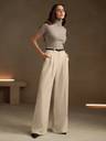 Elevate your wardrobe wit legant wide-leg trousers. Designed with a flattering high-rise waist and crafted in a smooth solid fabric, these trousers offer both structure and flow. The sleek black belt adds a refined finish, making them perfect for office days or upscale evenings.