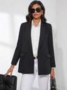 Women Solid Mandarin Casual Blazer (Black)