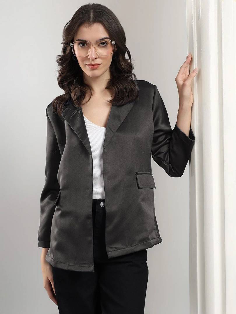 Step into effortless elegance with this stunning black blazer from KOTTY. Crafted from soft and breathable viscose rayon fabric, this blazer delivers the perfect balance of comfort and sophistication. Its smooth texture and lightweight feel make it an ideal layering piece for both work and after-hours.Designed with a regular fit, it drapes beautifully on all body types, offering a flattering yet relaxed silhouette. The tailored structure enhances your style, whether you're pairing it with trousers for a professional look or layering over a dress for a chic ensemble.