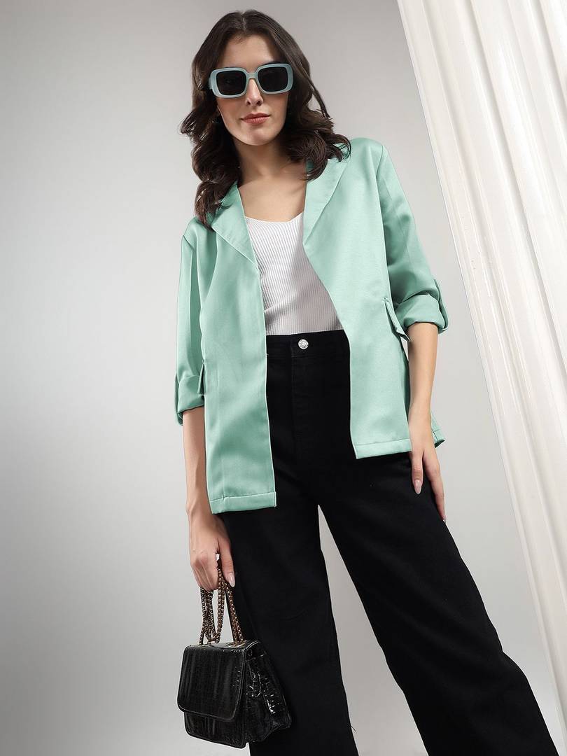 Step into effortless elegance with this stunning green blazer from KOTTY. Crafted from soft and breathable viscose rayon fabric, this blazer delivers the perfect balance of comfort and sophistication. Its smooth texture and lightweight feel make it an ideal layering piece for both work and after-hours.Designed with a regular fit, it drapes beautifully on all body types, offering a flattering yet relaxed silhouette. The tailored structure enhances your style, whether you're pairing it with trousers for a professional look or layering over a dress for a chic ensemble.