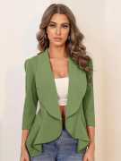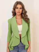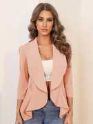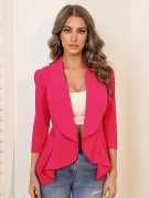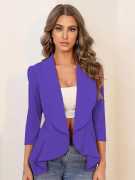 Cut to a relaxed silhouette, this brown blazer from Kotty is perfect for a day out. Made from viscose rayon fabric, this blazer has regular fit for your convenience. Featuring a shawl collar, 3/4 sleeves and solid pattern, this blazer possesses a stylish enchantment. Team this blazer with a pair of contrast pants and ballerinas for a chic look.