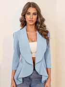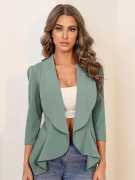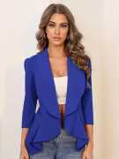 Introducing the Kotty Women's Single Breasted Relaxed Fit Shawl Collar 3/4 Sleeve Blazer, a statement piece that embodies the essence of the Kotty brand. Crafted with comfort in mind, this blazer features luxurious viscose rayon fabric, ensuring a soft and smooth feel against the skin. Its modern design and sleek silhouette make it a versatile addition to any wardrobe, perfect for today's fashion-forward generation. Whether you're dressing up for a professional setting or adding a touch of sophistication to your casual ensemble, this blazer effortlessly elevates your style game. Discover the perfect blend of comfort, style, and contemporary elegance with Kotty.