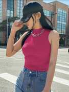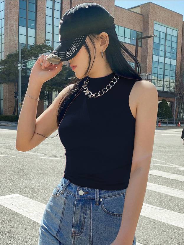 Give a beautiful upgrade to your dailywear repertoire with the mesmerising hues of this gorgeous rib tshirt from the latest offering of Kotty. Beautifully crafted in premium rib fabric for gentle lustre replete with a soft touch and superb comfort, it's versatile solid pattern, high neck,sleeveless and well-engineered slim fit silhouette make it a go-to choice any day. Pair it best with denims for a stunning look.