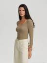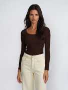 KOTTY Solid Women Scoop Neck Brown T-Shirt