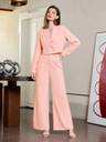 Be the epitome of class and grace while donning this pink cord set from kotty. Crafted from viscose rayon , this set features a spread collar blazer and pant set with an button closure waist. The cord set is also modeled with full sleeves.Kindly ensure the size chart before buying.