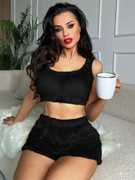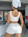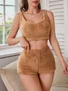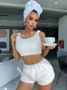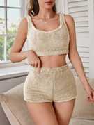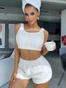 Stay cozy and chic with this white coral Febric two-piece set featuring a sleeveless crop top and comfy high-waist shorts. The ultra-soft coral fabric gives a warm and plush feel, making it perfect for lounging or relaxing at home during cool weather. Designed with a round neck top and thigh-length regular shorts for a relaxed and stylish fit.