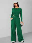 Be the epitome of class and grace while donning this Green Dress set from kotty. Crafted from Cotton Blend, this set features a Boat Neck Top and pant set with an Maxi length. The dress set is also modeled with full sleeves.Kindly ensure the size chart before buying.