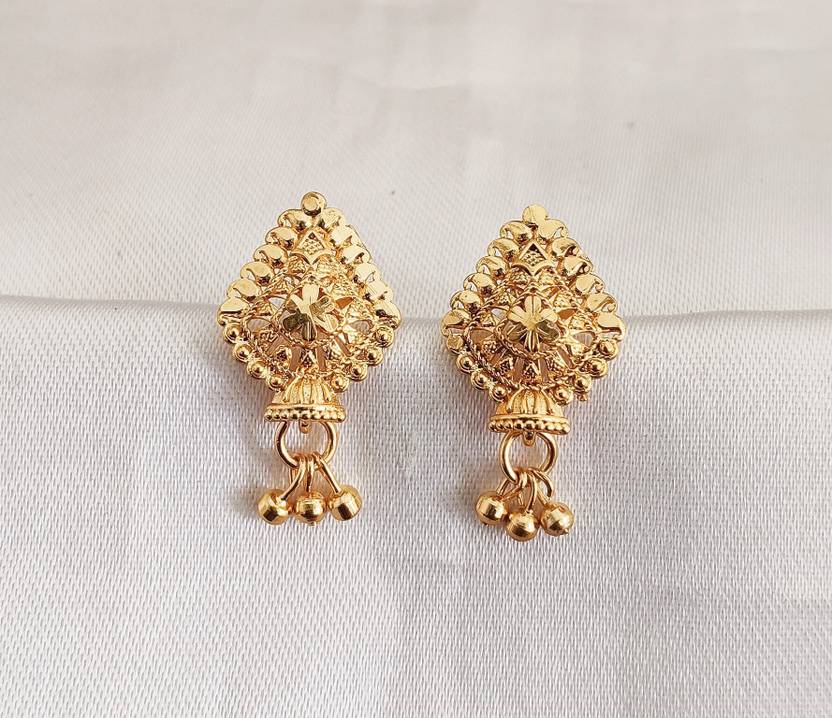 Kowsalya Gold Covering KGC_Plain 3 Ball Drop Earrings for Women, Gold, Indian Inspired Design Cobalt Drops & Danglers