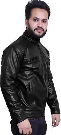 Men Solid Leather Jacket