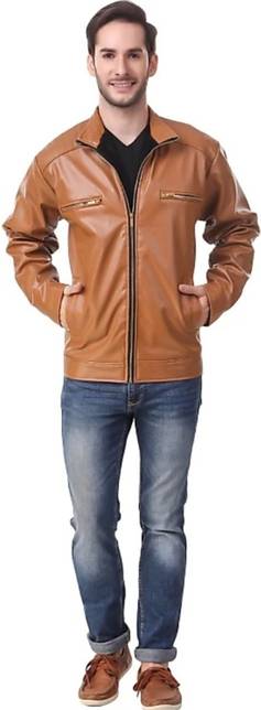 KP Trend Men Solid Leather Jacket