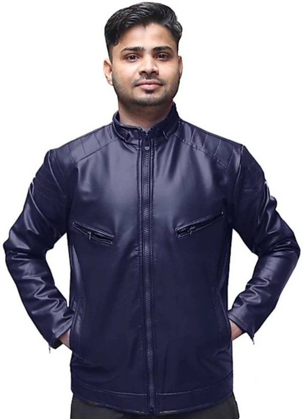 This stylish regular fit jacket in the display has full sleave and stand collar. Inside one pocket and branded zippers, this faux leather jacket is light in weight and will ensure cofort all time.