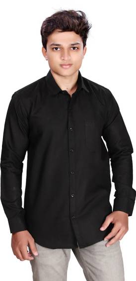 KpTen Men Solid Formal Black Shirt