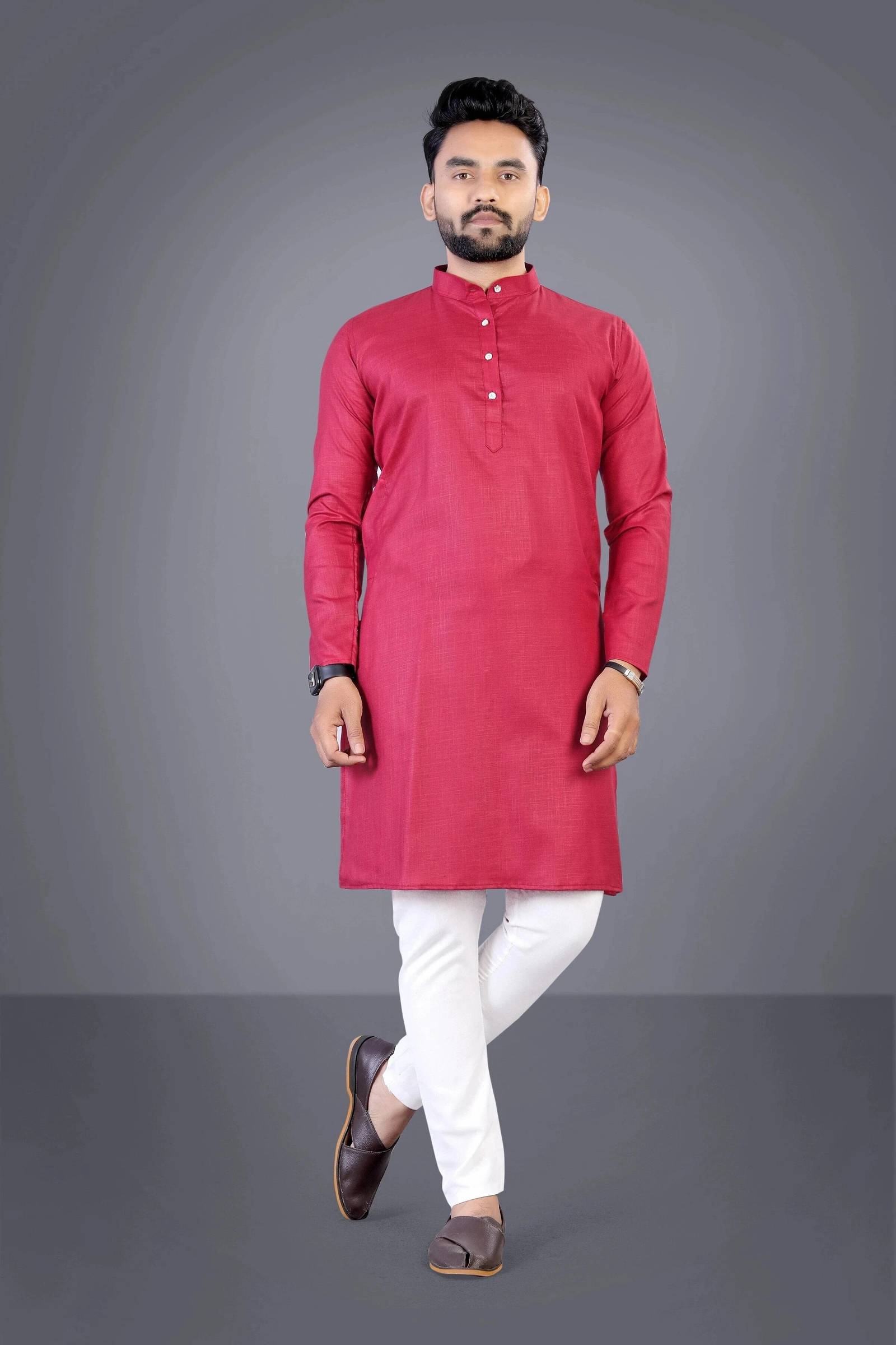 This Men’s Cotton Blend Kurta Pyjama Set offers a perfect blend of comfort, style, and tradition. Crafted from a high-quality cotton blend fabric, this set ensures breathability and durability, making it ideal for various occasions. The kurta features a classic straight-cut design with full sleeves and a mandarin collar, adding a touch of elegance and sophistication. It is adorned with intricate embroidery on the placket and cuffs, enhancing its traditional appeal. The pyjama, designed for a relaxed fit, complements the kurta perfectly. It features an elastic waistband, providing a comfortable and adjustable fit. This set is available in various sizes and colours, catering to different preferences and a perfect fit for every individual. Ideal for festive occasions, weddings, and cultural events, this kurta pyjama set is a versatile addition to any wardrobe. Pair it with traditional mojari shoes and accessories for a complete ethnic look. Easy to care for and maintain, this set offers timeless style and comfort, making it a must-have for every modern man's ethnic collection.