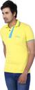 Men Self Design Polo Neck Cotton Blend Light Blue, Yellow T-Shirt