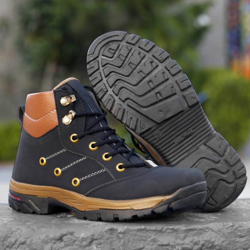 Kraasa Solid Boots For Men (Black , 9)