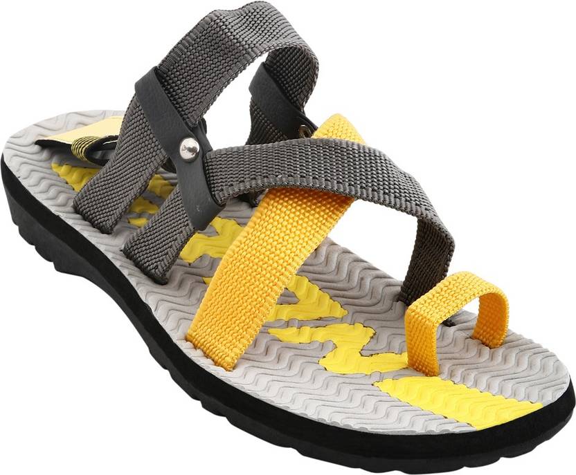 Kraasa Men Trendy Casual Sandal (Grey, Yellow , 9 UK/India)