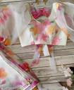 The saree comes with a matching blouse made with the same organza fabric. Using the same organza fabric for both the saree and the blouse ensures that your outfit's components blend effortlessly. The coordination in material enhances the overall look, giving a polished appearance. The overall weight of the saree is only .35g, which makes it a super lightweight option to carry around easily.