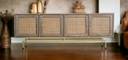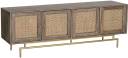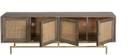 Introducing our exquisite Natural Cane Sideboard with 3 Drawers and 3 Cane Doors, crafted from the finest mango wood and finished in a stunning light brown tone. This elegant piece of furniture combines functionality with a premium design, making it a remarkable addition to any living space. The natural cane detailing on the doors adds a touch of sophistication and elegance to the sideboard, creating a visually captivating focal point. The meticulously woven cane panels provide a subtle texture that enhances the overall aesthetic appeal and complements the smooth, rich grain of the mango wood. With three spacious drawers and three cane doors, this sideboard offers ample storage space for all your belongings. Organize your essentials and keep them within easy reach, whether you use it in your dining room, living room, or entryway. The drawers effortlessly glide open and closed, thanks to the precision craftsmanship and attention to detail. To accentuate its luxurious charm, the Natural Cane Sideboard features golden knobs that perfectly complement the light brown finish of the wood. The combination of the golden accents and the warm hue of the mango wood creates an inviting and timeless ambiance. Durability is a key feature of this sideboard. Made from high-quality mango wood, known for its sturdiness and resistance to wear and tear, this piece of furniture is built to last. The light brown finish enhances the natural beauty of the wood while providing protection against daily use. Whether you're seeking a stylish storage solution or a statement piece to elevate your interior decor, the Natural Cane Sideboard with 3 Drawers and 3 Cane Doors is a remarkable choice. Embrace the blend of natural materials, premium craftsmanship, and timeless design that will transform your space into a haven of elegance and functionality