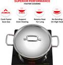 Courtesy of its excellent design, this kadhai is suitable for use on various cooktops, including induction stoves and gas stoves. So, whether you prefer healthy cooking options or need cookware that is easy to maintain, this kadhai delivers. Designed with its triple-layer construction and up to 2.5 mm thickness, this kadhai offers durability and rust resistance for long-lasting use.