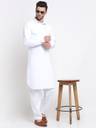 KRAFT INDIA is known for providing fashionable men's and boys' ethnicwear with the best quality. We have created a really devoted consumer base over the years, and they are always on the lookout for our new collection.This Pathani knee length kurta, has a Shirt collar, long sleeves, side pockets, button closure, side slits, Curved hem with drawstring closure Pathani Salwar .pick this best pathani kurta set for EID and other occasion and enhanced your style statment.