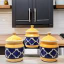 Kraftlik Handicrafts Ceramic Pickle Jar - 300 ml (Pack of 3, Multicolor)