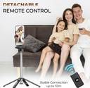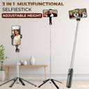 Kratos Bluetooth Selfie Stick Tripod | Quadrapod Design | 102cm Extendable Bluetooth Selfie Stick (Black, Remote Included)
