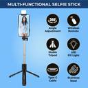 Kratos Selfie Stick with LED Light | Tripod Stand | Wireless Remote | Dual Mode Bluetooth Selfie Stick (Black, Remote Included)