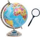 Kreative Globe 8 inch diameter 10 inch height & Magnifying Glass for Kids/Office/Students Political Political World Globe (Diameter 8 inch Height 10 ich Blue)
