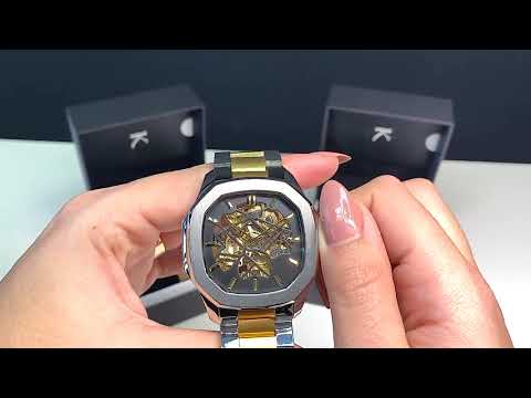 Alix AL2904 Silver gold color trendy Analog Watch - For Men exclusive automatic skeleton attractive dial and self-winding steel band watch