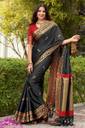 VILLAGIUS Woven Ikkat Silk Blend Saree (Black)