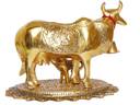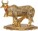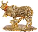 KridayKraft Kamdhenu Cow Metal Statue,Vastu Showpiece,Gau Mata for Pooja,Gift Article,Animal Decorative Showpiece - 17 cm (Metal, Gold)