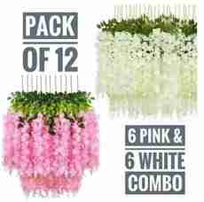 TheLeafAndLight White and Pink Wisteria Artificial Flower Combo (Pack of 6 + 6) White, Pink Westeria Artificial Flower 42 cm, Pack of 12, Vine & Creepers