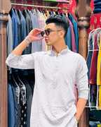 Lucknowi kurta set for men with mirror work and premium fabric for wearing at wedding festival and function any wear and any season look like traditional wearing.