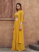 Pack of 3 Embroidered set with Jacket -: Top Style – Short Top : Top Fabric –Georgette , Bottom Style – Skirt :Pant Fabric – Georgette ; Color : Yellow , Jacket Fabric - Georgette ;