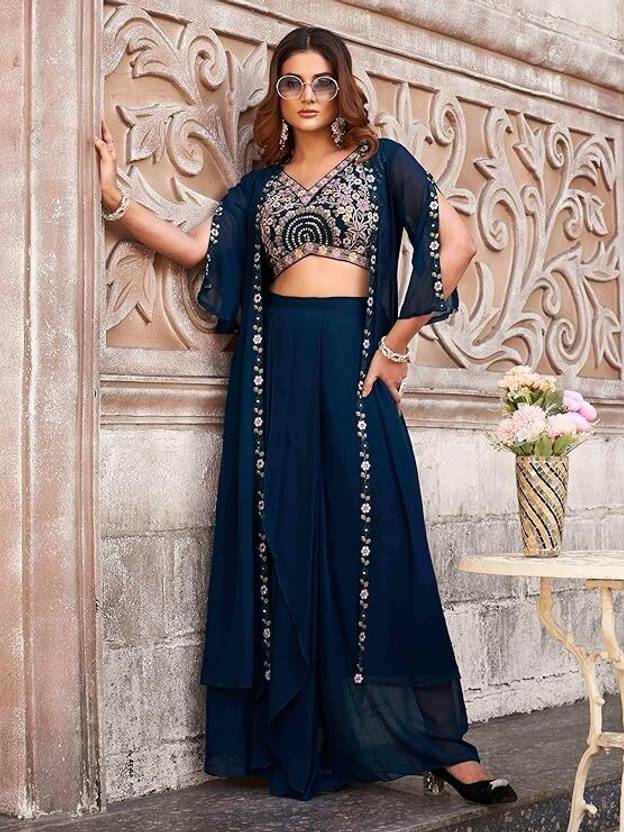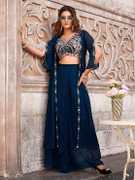 KRIMAA Embroidered Stitched Lehenga & Crop Top (Dark Blue)