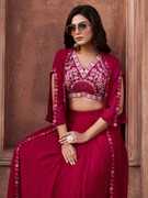 Women’s Red Embroidered Lehenga Choli with Stylish Cape