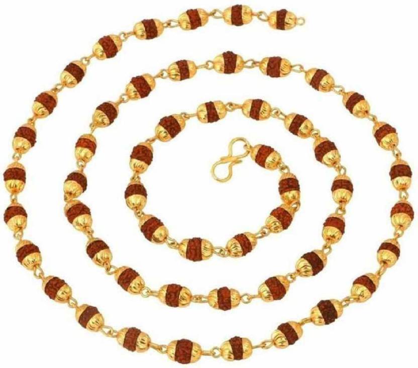 Origional 6mm Natural Rudraksha Japa Mala Wood Chain sivaji Gold-plated