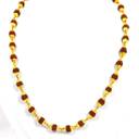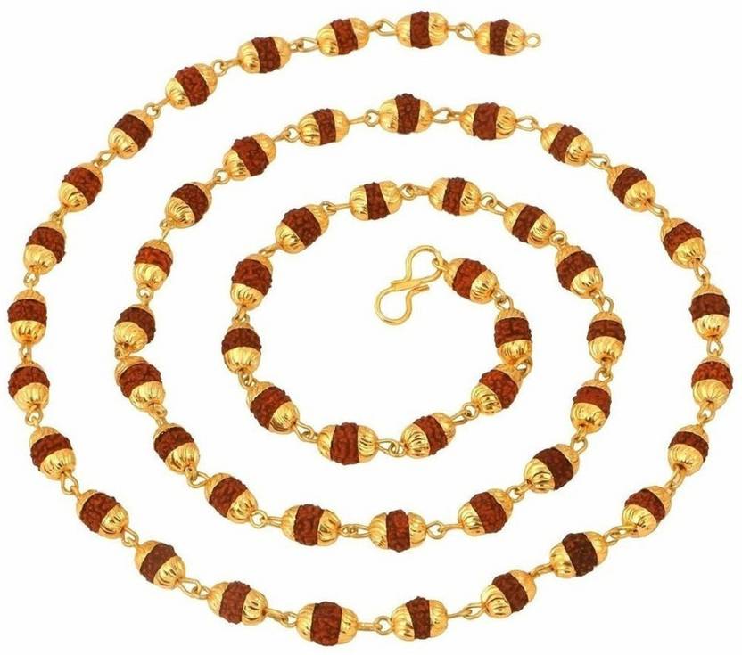 Rudraksha : in Sanskrit, the word Rudraksha consists with word of 'RUDRA' and 'AKSHA' in which Rudra denotes to Lord Shiva and Aksha refers to tear. It is believed that when Lord Shiva was in deep meditation, a drop of tear fell of his eyes which grew into the divine fruit, that in Rudraksha. It is also said that one who wear this divine fruit achieves eternal blessing and is deemed closet to Lord Shiva himself. Rudraksha is mainly found in Nepal, Java Sumatra Island and India and found one facet (mukhi) to twenty one facet (mukhi) and a unique kind is called GAURI-SHANKAR and GANESH RUDRAKSHA and Golden Beads enclosing the mala gives it the perfect shape so that the essence of rudraksha mixes with the golden closings to give you a sence of purity in soul and mind as gold is treated as a good element to purify your inner self.