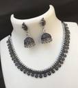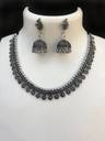 This jewellery set features a premium oxidised silver finish that gives it a rich, antique appearance., The matte yet slightly glossy texture adds a vintage charm while ensuring it doesn't look too flashy., The matte yet slightly glossy texture adds a vintage charm while ensuring it doesn't look too flashy., The white bead accents enhance the ethnic look, making it ideal for traditional as well as fusion wear.The white bead accents enhance the ethnic look, making it ideal for traditional as well as fusion wear.