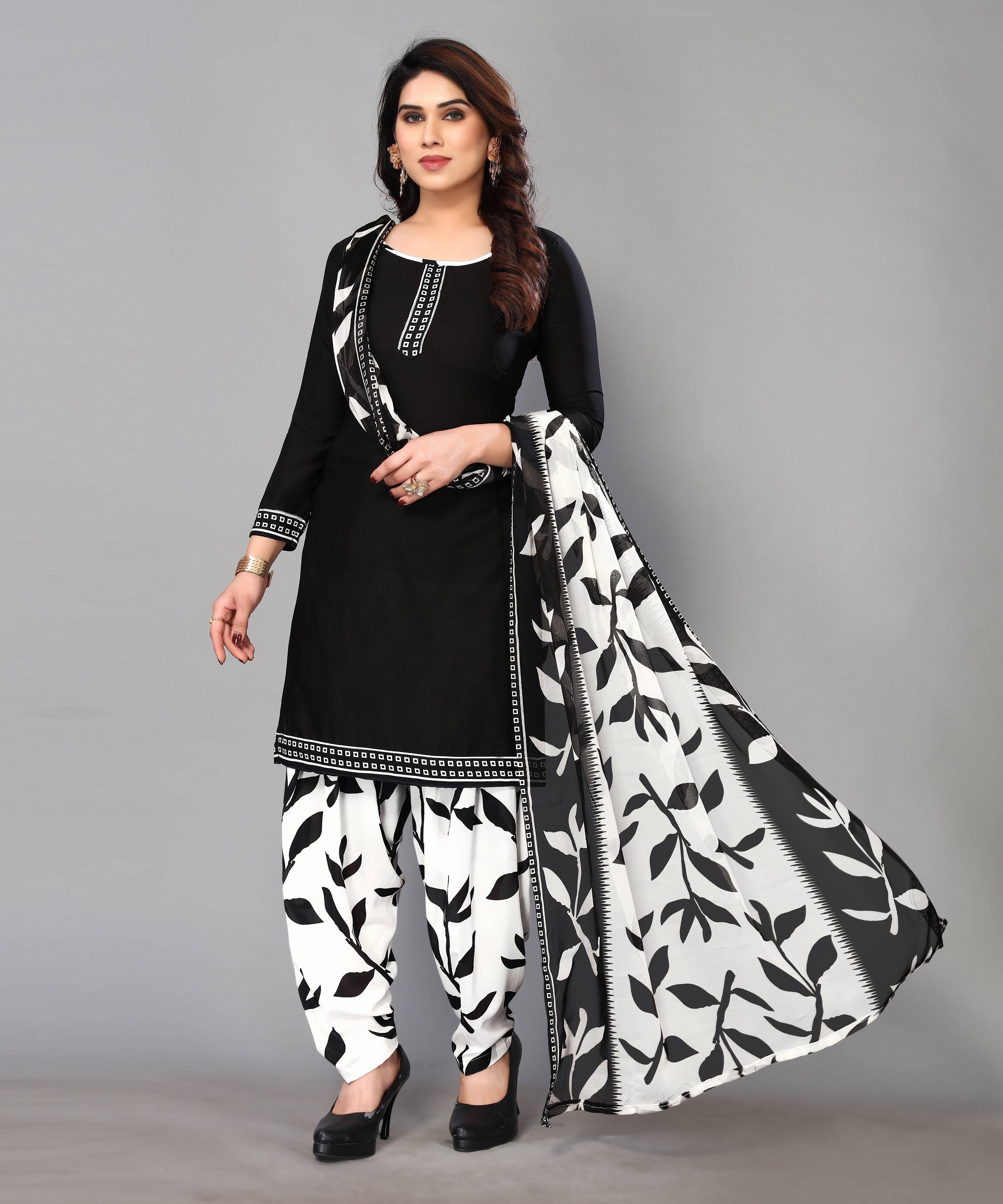 Flaunt a new ethnic look with this dress material. This Italian Leon Crepe suit is beautifully adorned with Print work comes along with solid Italian Leon Crepe bottom and martina chiffon dupatta makes it appear more adorning. Women can buy this suit to wear for their upcoming festivals, homely functions, parties, kitties, weekend get together. Get this unstitched suit stitched according to your fit and comfort. Team it with stylish accessories to make your looks more beautiful. Note:- The actual product may differ slightly in color and design from the one illustrated in the images when compared with computer or mobile screen.