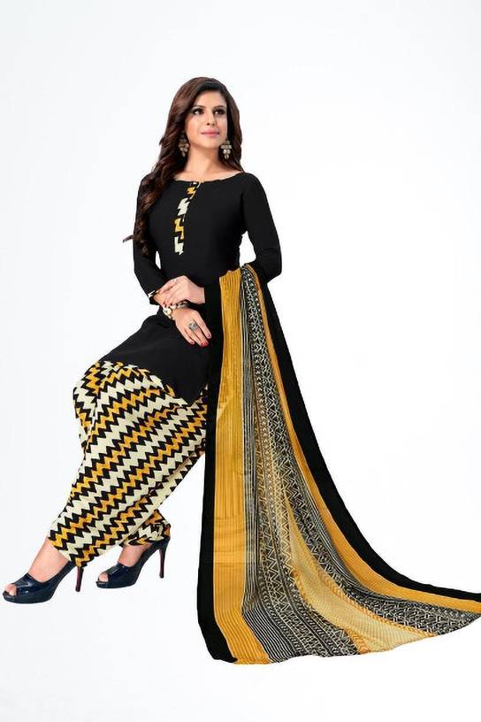 Flaunt a new ethnic look with this dress material. This Italian Leon Crepe suit is beautifully adorned with Print work comes along with solid Italian Leon Crepe bottom and martina chiffon dupatta makes it appear more adorning. Women can buy this suit to wear for their upcoming festivals, homely functions, parties, kitties, weekend get together. Get this unstitched suit stitched according to your fit and comfort. Team it with stylish accessories to make your looks more beautiful. Note:- The actual product may differ slightly in color and design from the one illustrated in the images when compared with computer or mobile screen.