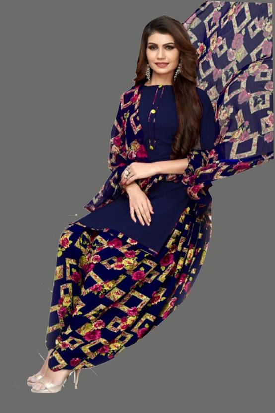 Womens Crepe Printed Unstiched Dress Material. Add style to your Daily Wear Collection with this Printed Dress material Salwar suit. 1 Unstitched Salwar, 1 Unstitched Top, 1 Dupatta.Top & Bottom Fabric : American Crepe, Dupatta Fabric : Martina You can use it for daily wear purpose it will give you immense comfort and fresh styling look.