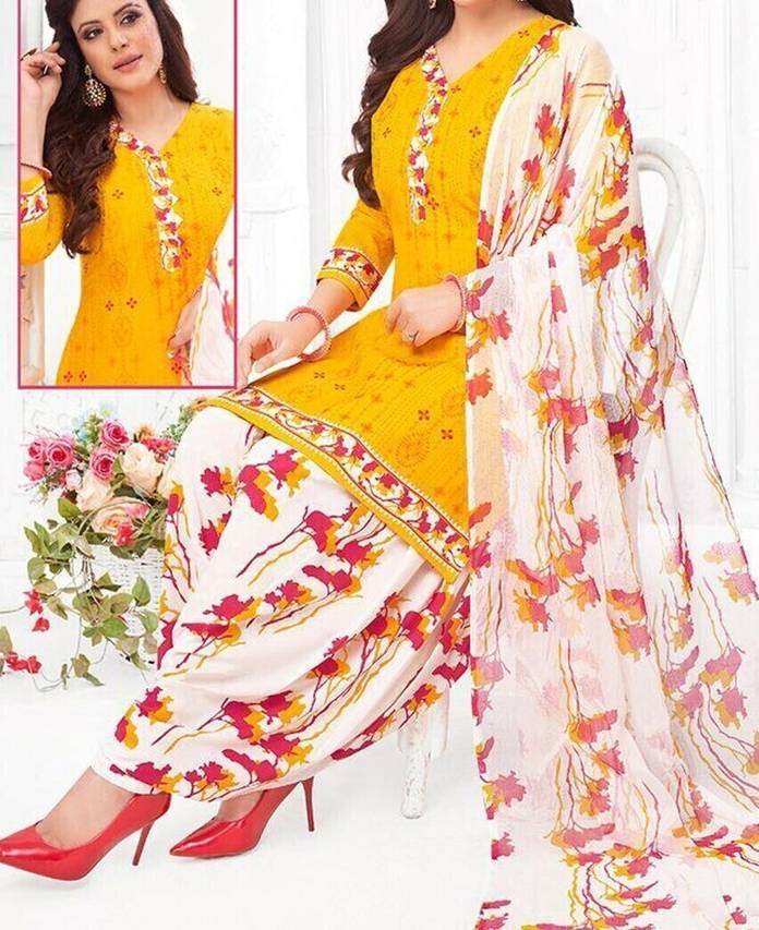 Flaunt a new ethnic look with this dress material. This Italian Leon Crepe suit is beautifully adorned with Print work comes along with solid Italian Leon Crepe bottom and martina chiffon dupatta makes it appear more adorning. Women can buy this suit to wear for their upcoming festivals, homely functions, parties, kitties, weekend get together. Get this unstitched suit stitched according to your fit and comfort. Team it with stylish accessories to make your looks more beautiful. Note:- The actual product may differ slightly in color and design from the one illustrated in the images when compared with computer or mobile screen.