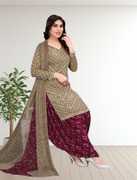 Flaunt a new ethnic look with this dress material. This Italian Leon Crepe suit is beautifully adorned with Print work comes along with solid Italian Leon Crepe bottom and martina chiffon dupatta makes it appear more adorning. Women can buy this suit to wear for their upcoming festivals, homely functions, parties, kitties, weekend get together. Get this unstitched suit stitched according to your fit and comfort. Team it with stylish accessories to make your looks more beautiful. Note:- The actual product may differ slightly in color and design from the one illustrated in the images when compared with computer or mobile screen.