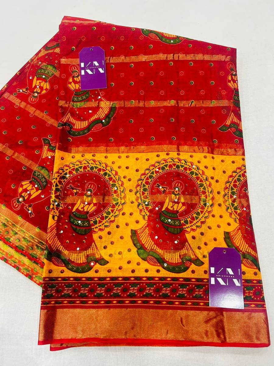 KRISHNA NX Embellished Daily Wear Pure Cotton Saree (Red)