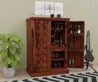 Krishna Wood Decor Sheesham Wood Bar Cabinet With Multiple Compartments For Home & Bar/ Mini Bar || Solid Wood Bar Cabinet (Finish Color - Honey Finish - 3, Pre-assembled)