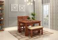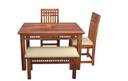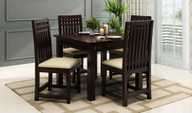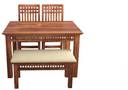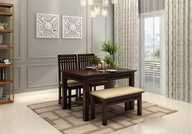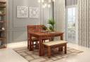 Each piece in a Sheesham wood dining set is crafted with meticulous attention to detail, highlighting the wood's distinctive rich brown tones interspersed with darker streaks and occasional knots that add character. The natural luster of Sheesham wood is further enhanced by a smooth, polished finish, which brings out the depth of its grain and provides a resilient surface resistant to wear and tear.